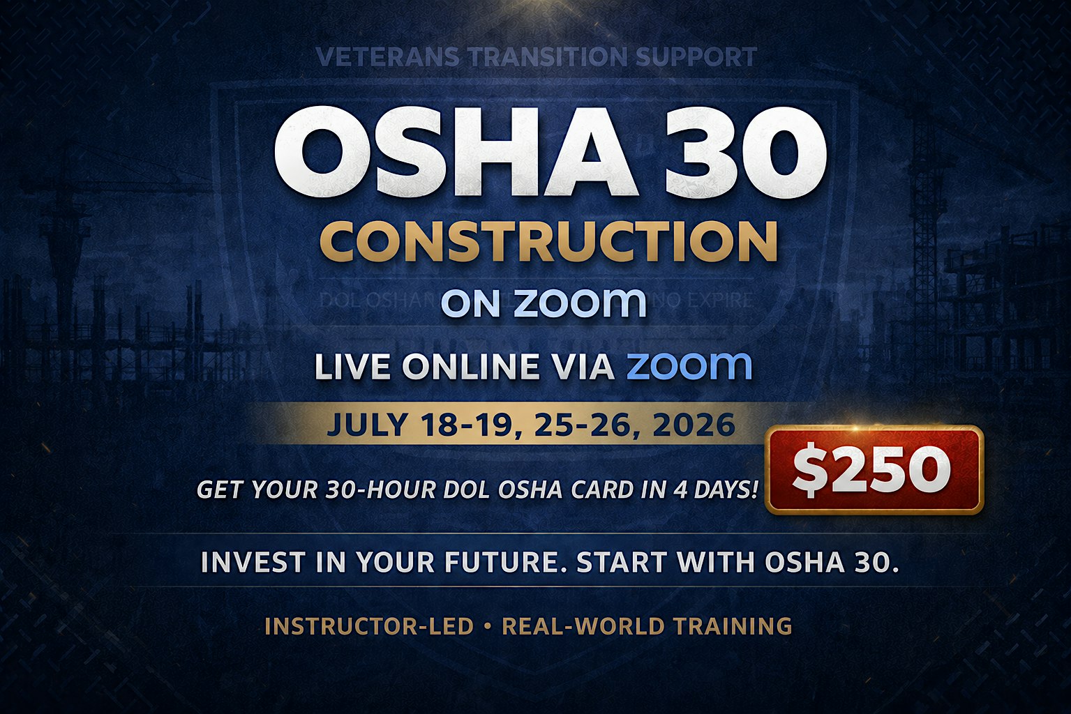 ZOOM OSHA 30-Hour Construction Safety Course JULY 18-19, 25-26 2026 $250